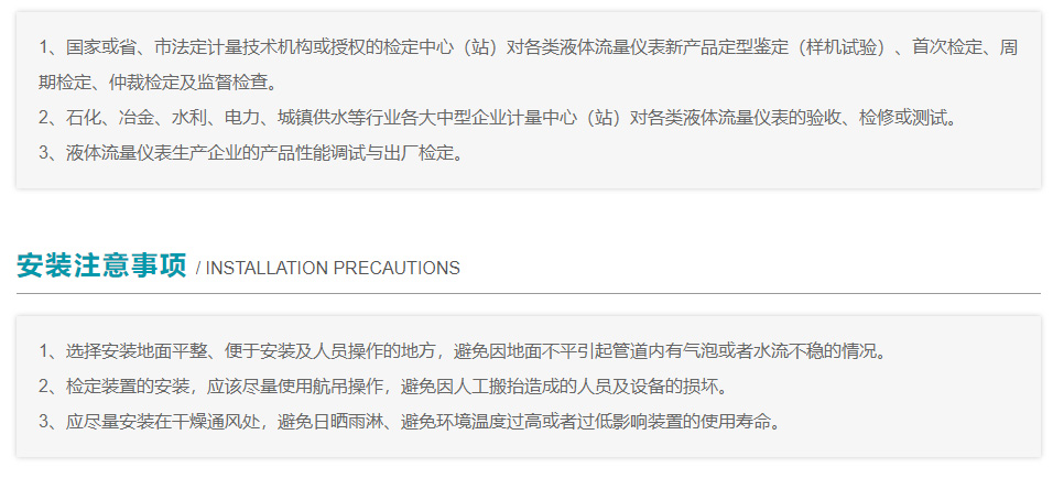 被檢表種類 | 電磁流量計(jì)、渦輪流量計(jì)、金屬管浮子流量計(jì)、渦街流量計(jì)等,可單獨(dú)一種,可多種同時(shí)檢定 | ||