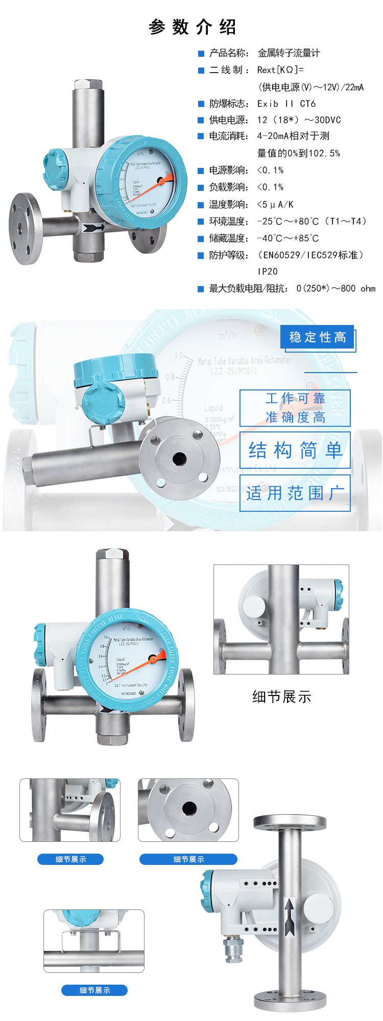 LZZ/D-CQ系列金屬管浮子流量計(jì),采用可變面積式測(cè)量原理,適用于測(cè)量液體、氣體。全金屬結(jié)構(gòu),有指示型、耐腐型、高壓型、夾套型、防爆型。具有0-10mA、4-20mA的標(biāo)準(zhǔn)模擬信號(hào)輸出和現(xiàn)場(chǎng)指示。累積,數(shù)字通訊,現(xiàn)場(chǎng)修改測(cè)量參數(shù),不同的供電方式功能,帶有磁性過(guò)濾器和特殊規(guī)格品種。